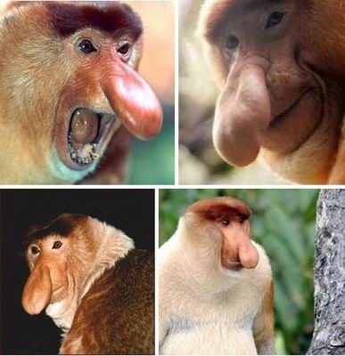 長鼻猴的學名為“Nasalis larvatus”,雌性與其它猴類並無異處。而雄性卻截然不同,它們長著腫大的鼻子,長度可達到18厘米。