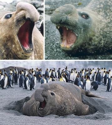 雄性海象的體形要大於雌性,現記錄顯示最重的海象體重達到5000 公斤,從鼻端至尾端體長達到6.9米。海象之所以被人們認為是一種丑陋的動物,是因為它們長著奇特怪異的鼻子。