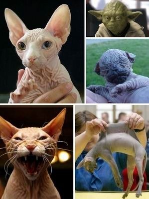 當人們半夜醒來時突然看到一隻斯芬克貓凝視著自己,多半會感到心神不定。斯芬克斯貓具有單一的皮毛顏色,與其它的貓不一樣,它的皮毛很薄,看上去好像直接覆蓋著一層皮膚而已。它長著楔形頭部,較大的耳朵,身體十分健壯。法國巴黎一隻名叫“皮埃爾”的斯芬克斯貓曾被記載為世界上壽命最長的純種貓,它的壽命為34年。