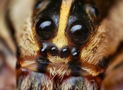 近距離觀看狼蛛時會讓人產生一種恐懼感,它們的體型很大,身體長滿毛發。像多數蜘蛛一樣,狼蛛長著8隻眼睛,其中一對主眼比其它6隻眼睛都要大,並且眼睛邊緣長有粗毛。這種蜘蛛可長至2.5厘米寬。
